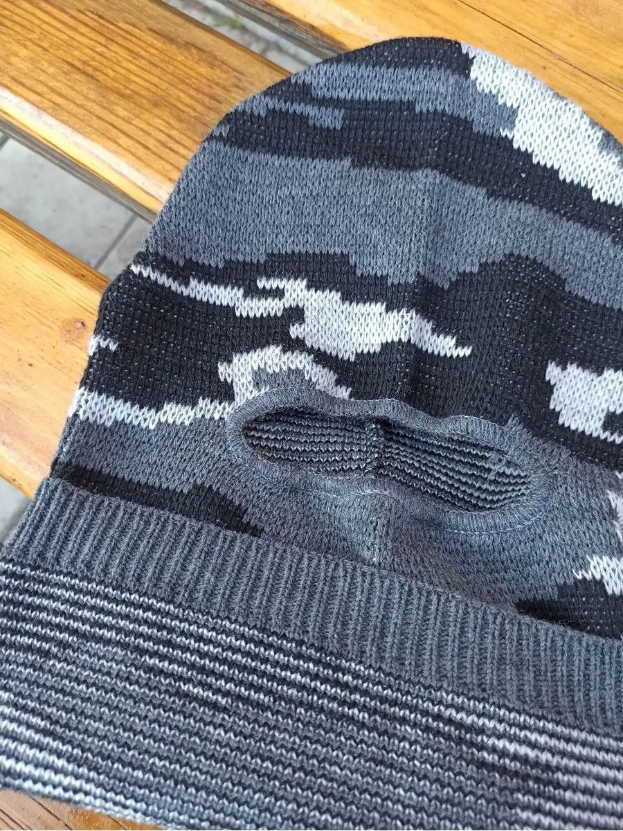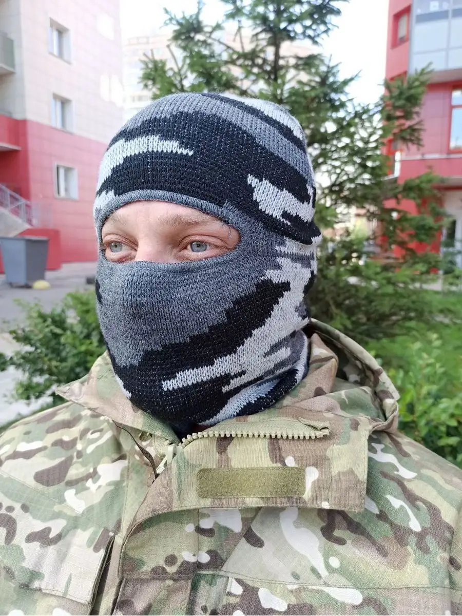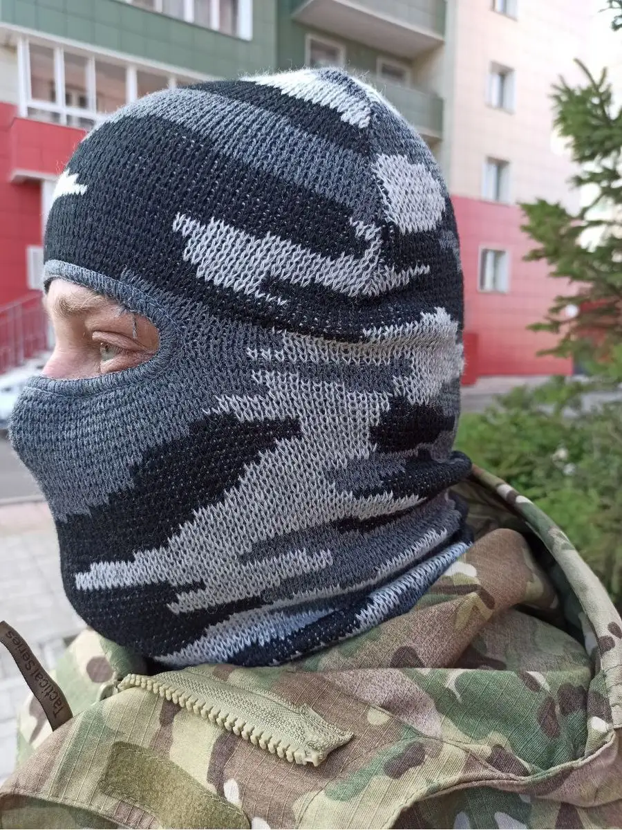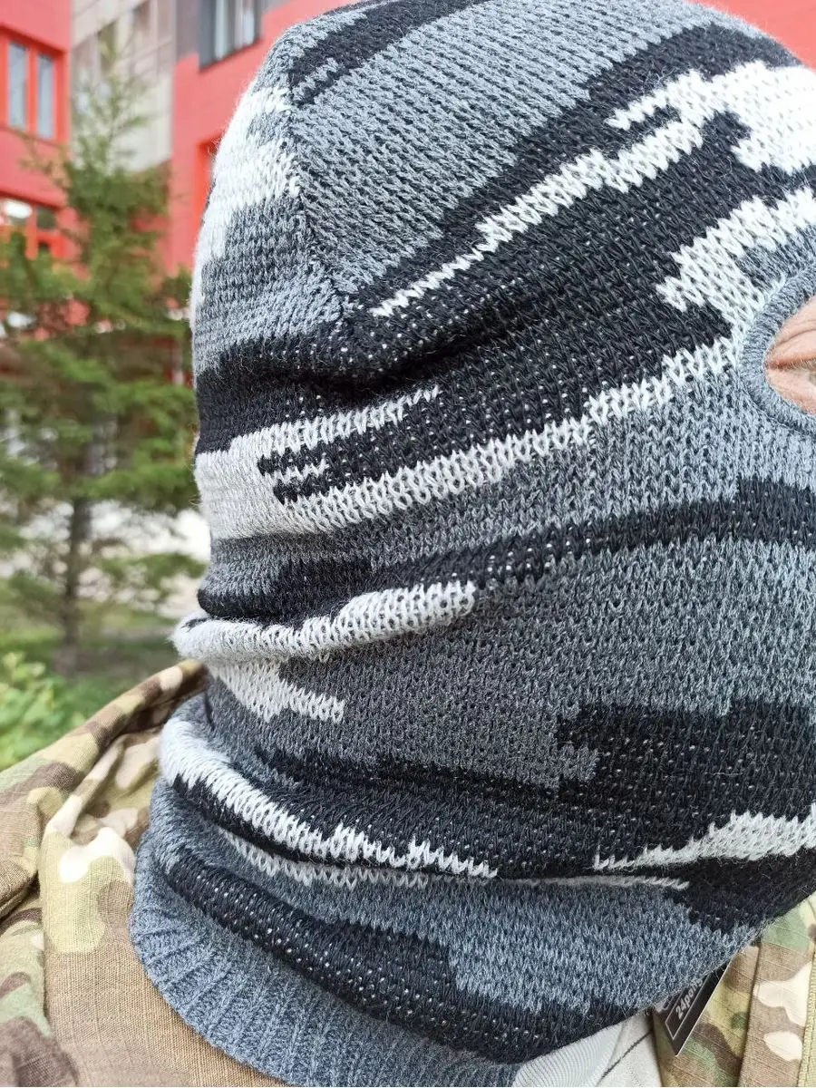 Универсальная шапка Лыжник КМФ. Головной убор цвета серый камуфляж, полностью закрывает голову и шею, оставляя открытыми только глаза. Балаклава тактическая создана для защиты лица от обморожения в условиях низких температур и надежной ветрозащиты. Материал полушерсть, двойной вязки. Вязаная шапка по низу оформлена широкой резинкой. Приятная на ощупь, не раздражает кожу лица и шеи. Размер универсальный. Подходит мужчинам и женщинам, унисекс. Балаклава обладает высокими теплосберегающими свойствами, заменяет шапку и шарф-снуд. Балаклава трансформер может заворачиваться в шапку бини с широким отворотом. Спортивная маска шлем тактический подойдет для занятия спортом альпинизм, восхождение на гору, под шлем или каску (подшлемник). Защитный аксессуар надевают для активностей в холодное время года: прогулок, езды на снегоходе, катании на сноуборде, лыжах и коньках. А также для зимней рыбалки и охоты, туризма. Шапка балаклава демик - зимняя мужская универсальная, комфортна под военным армейским шлемом или каской. Шапку используют силовые структуры при спецоперациях.