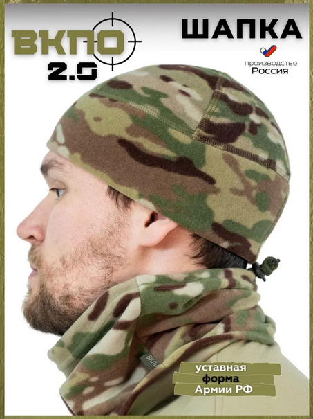 Флисовая шапка военная ВКПО 2.0, цвет - мультикам. Шапка тактическая предназначена для использования при температурах от 0 С до -15 С. Мягкая, приятная на ощупь шапка может сочетаться со шлемами, балаклавами, трубой-шарфом, имеет плоские швы. Гипоаллергенный флис, из которого сделана спортивная шапка, обладает отличным согревающим эффектом, при этом не допуская задерживания влаги. Это делает шапку лучшим вариантом для активного отдыха, туризма и интенсивных тренировок. Отлично подходит к флисовым костюмам, костюмам на синтетическом утеплителе. Благодаря камуфлированной и однотонной расцветке, возможно использование с разными вариантами одежды.