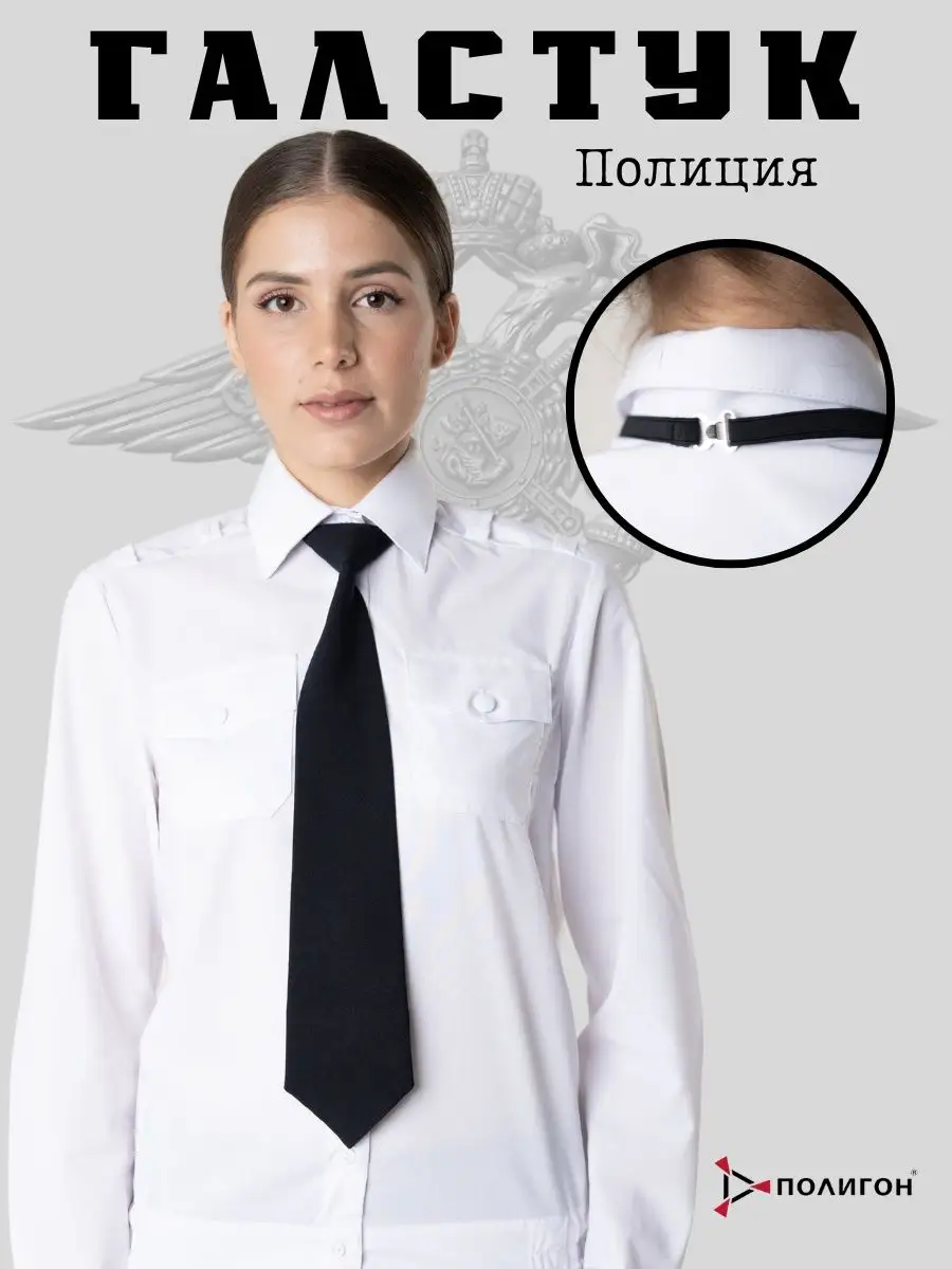Галстук-регат форменный уставной темно-синий носят военнослужащие подразделений Полиции МВД. Состоит из основной детали, узла и шейки. Широкий конец основной детали заканчивается углом, боковые стороны наклонные. Шейка галстука состоит из основной ткани, тесьмы эластичной и металлической фурнитуры. Рекомендуем так же заколка зажим для галстука.