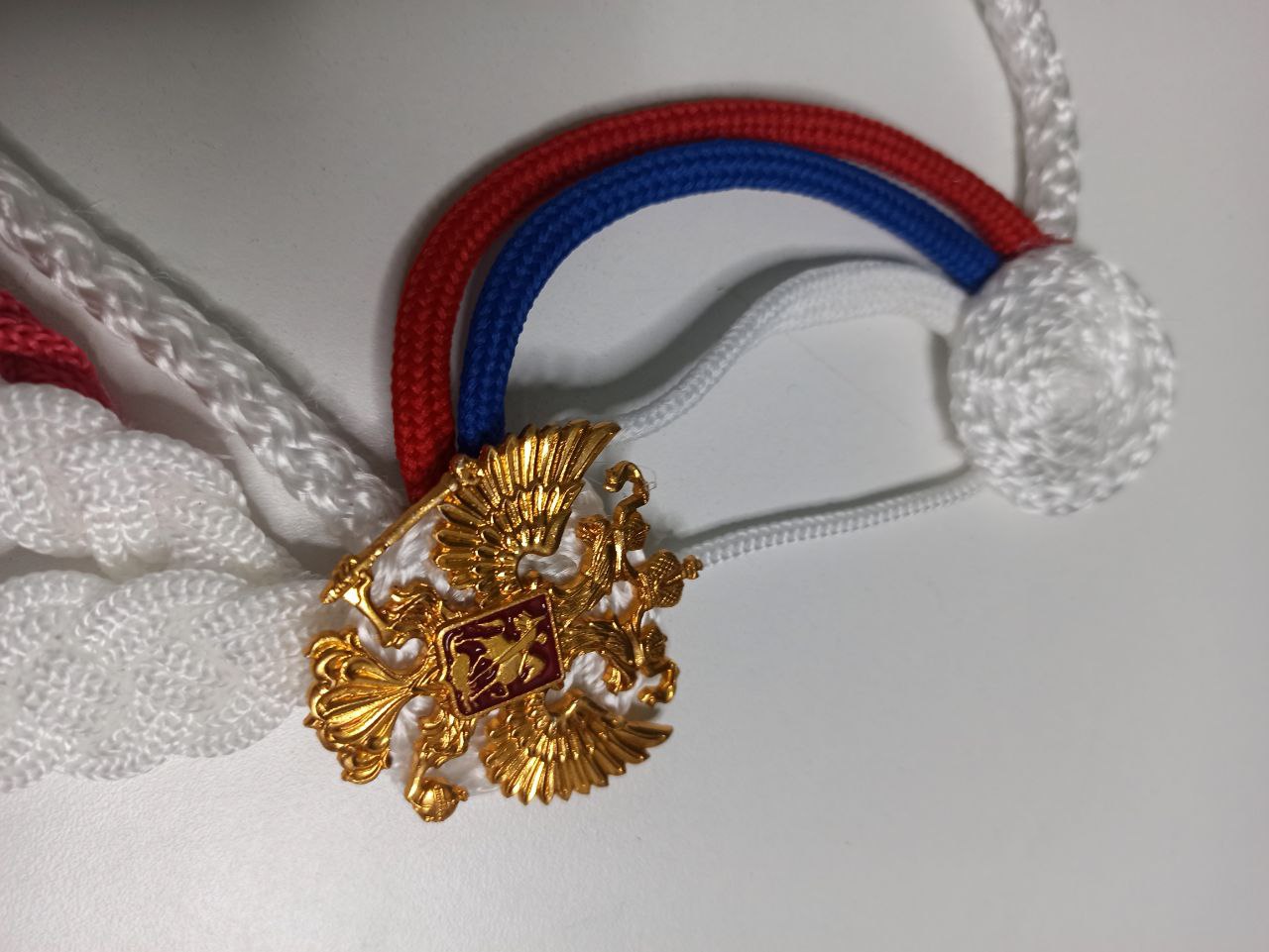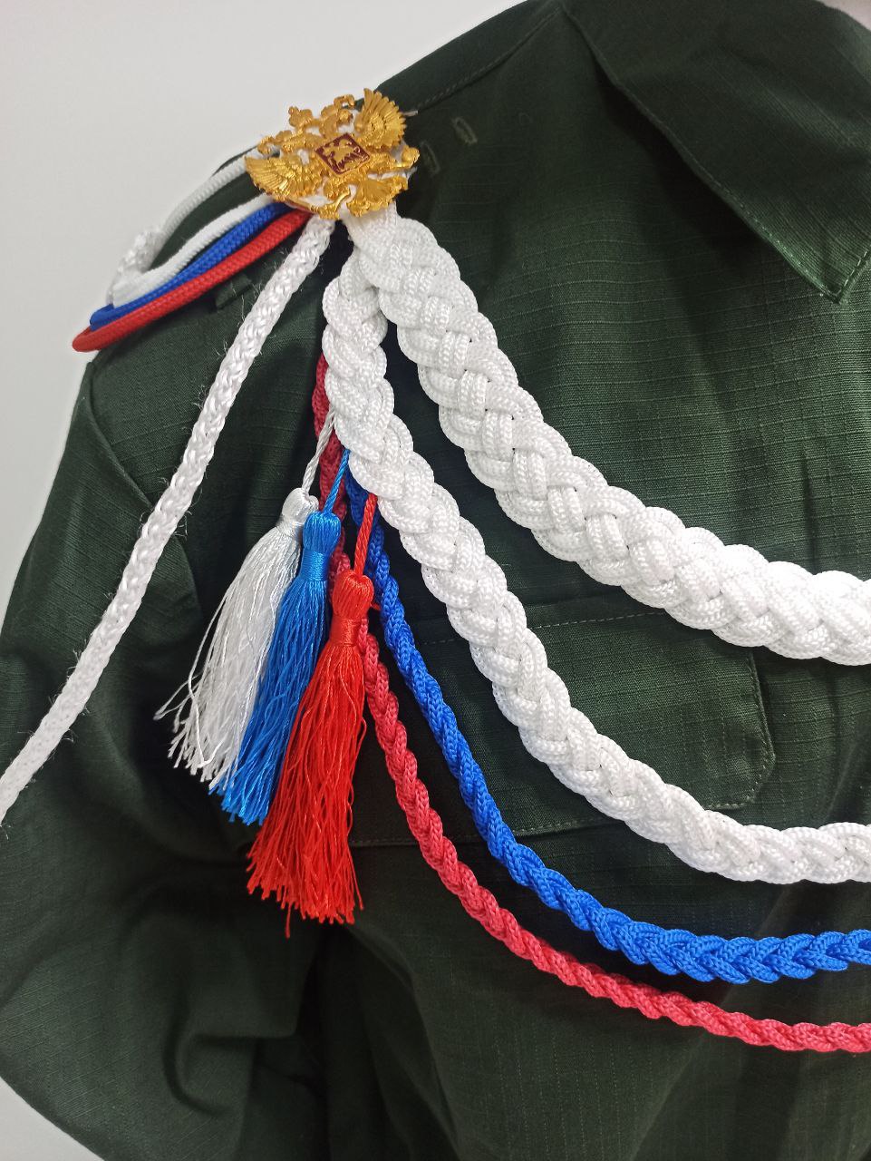 Аксельбант ДМБ цветной "кисти", белый, синий, красный - интернет магазин Полигон