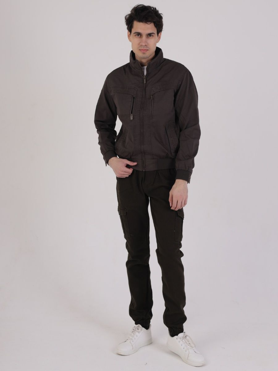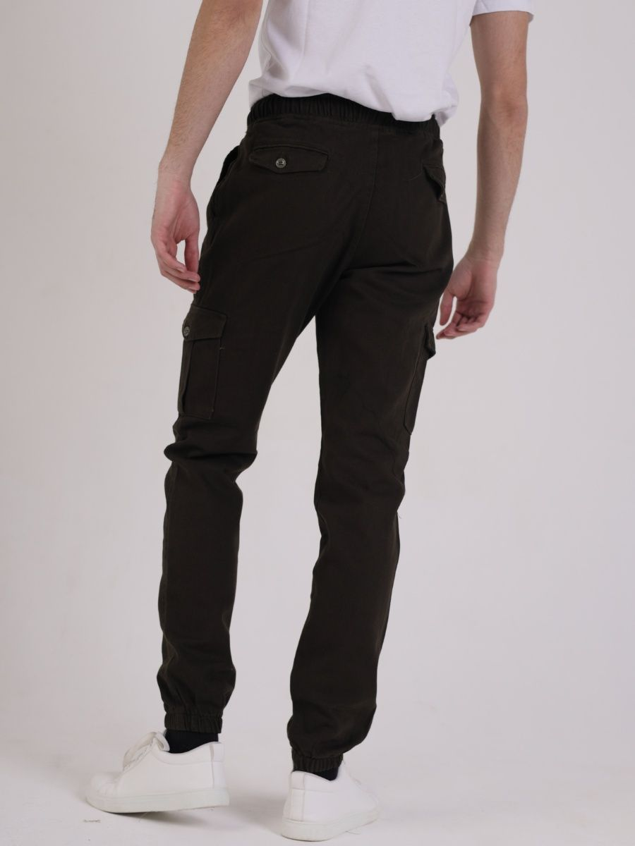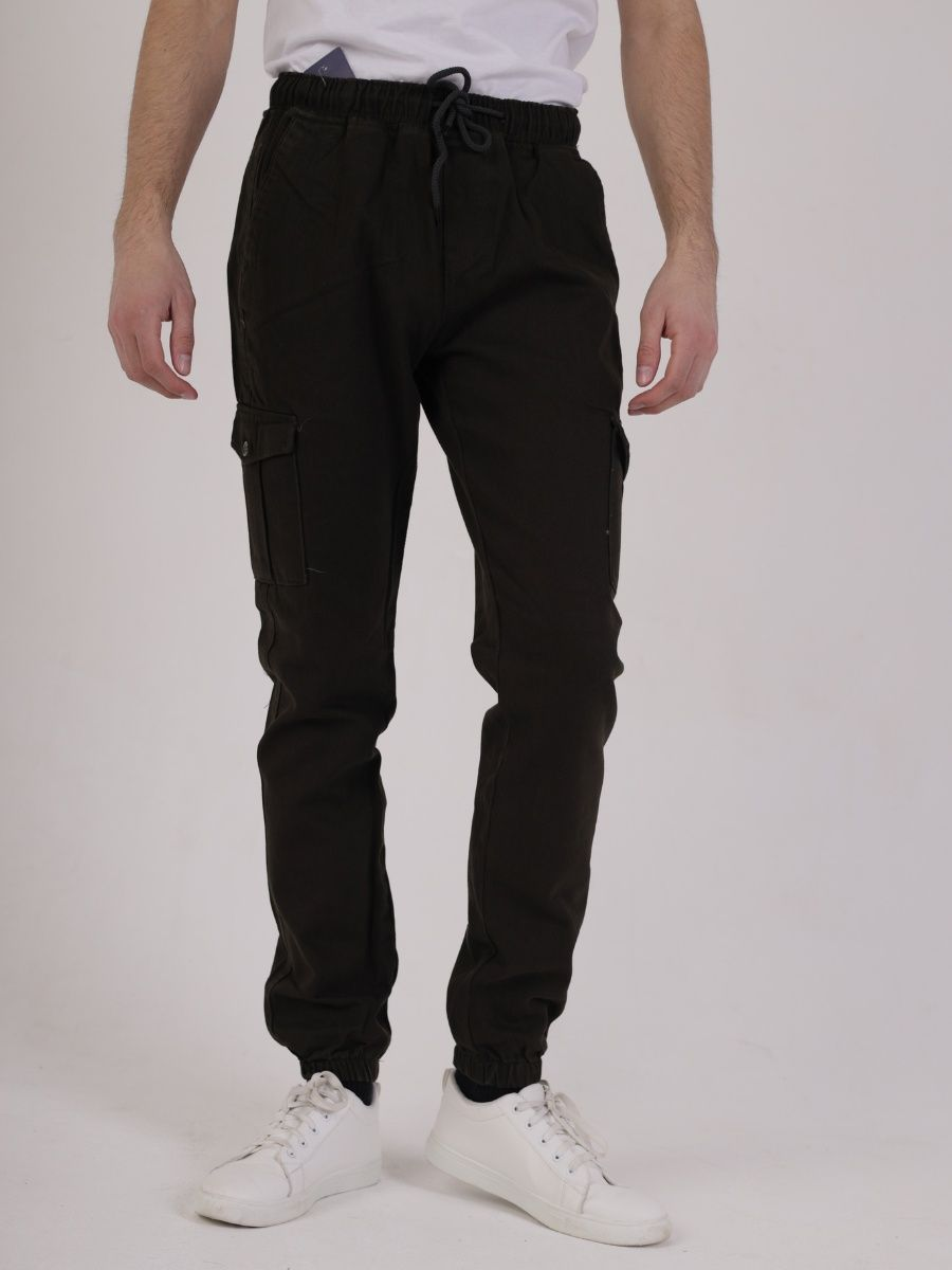 Брюки мужские представлены в цвете хаки (олива). Джоггеры удачная модель объединившая спортивный стиль с городским. Штаны стильно смотрятся и хорошо сочетаются с футболками, куртками, рубашками. Отлично вписываются у каждого мужчины, женщины, подростка в гардеробе. Материал джоггеров состоит из 97% хлопка, 3% полиэстер. Для различных аксессуаров предусмотрено 6 карманов: 2 прорезных, 2 накладных на бедрах, 2 накладных задних кармана. Все карманы глубокие и функциональные и ими удобно пользоваться. Отличительная черта этих спортивных штанов является резинка на талии, а также манжеты на щиколотках в виде резинки. Благодаря резинкам при необходимости брюки можно легко поднять. Брюки удобно носить с высокими берцами, кроссовками, мокасинами. Коллекцию карго джогерров весна-лето можно увидеть не только на стадионах и в спорт залах, но и на улицах и даже в офисах.