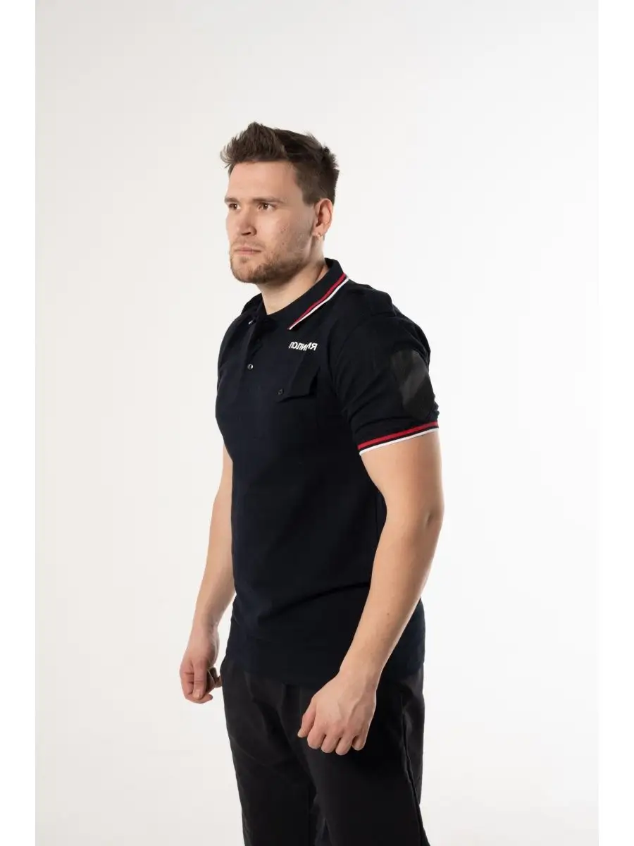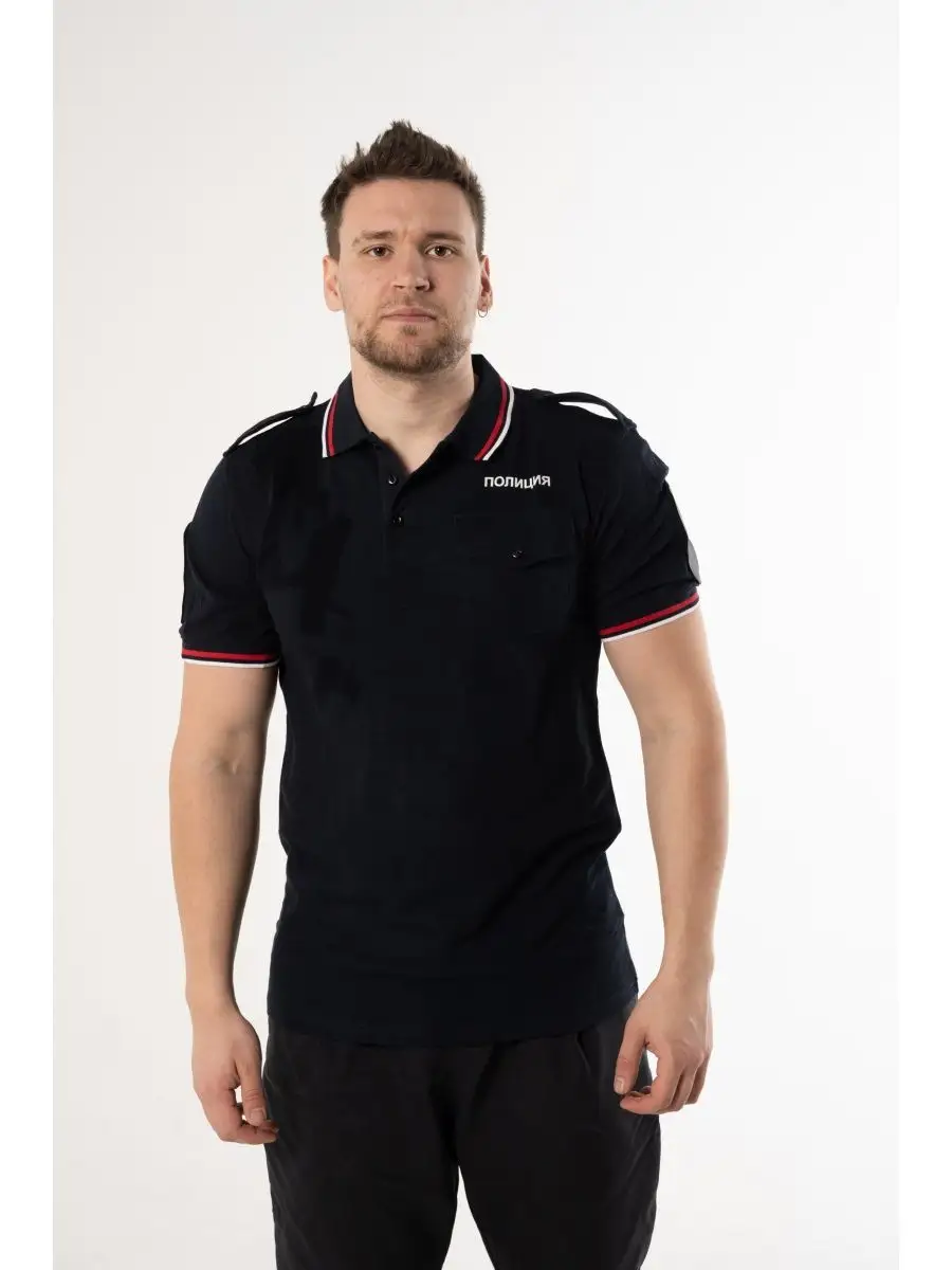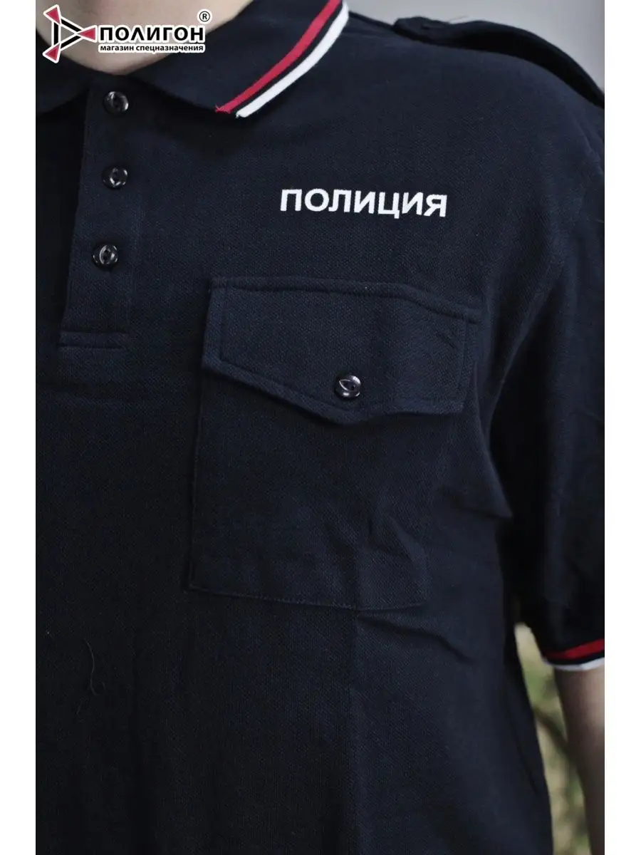 Поло Полиция, короткий рукав, с фальшпогонами, цвет черный, хлопок - интернет магазин Полигон