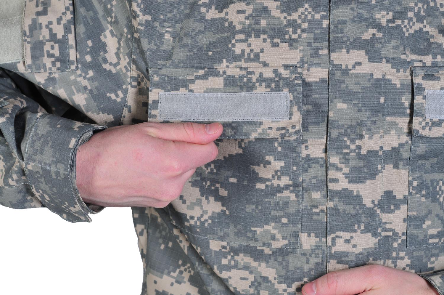 Воротник-стойка регулируется по объему, застегивается на липучку. Воротник оснащен липучками, которые защищает шею (например, бронежилетом). Рукава кителя усилены в локтевой области. Манжеты можно отрегулировать с помощью застежки-липучки. На кителе имеется 4 накладных карманам на липучке, а также имеется 1 карман с изнаночной стороны кителя, крепление для погонов и шевронов. Рукава усилены на локте, где расположены карманы для крепления защитных элементов.