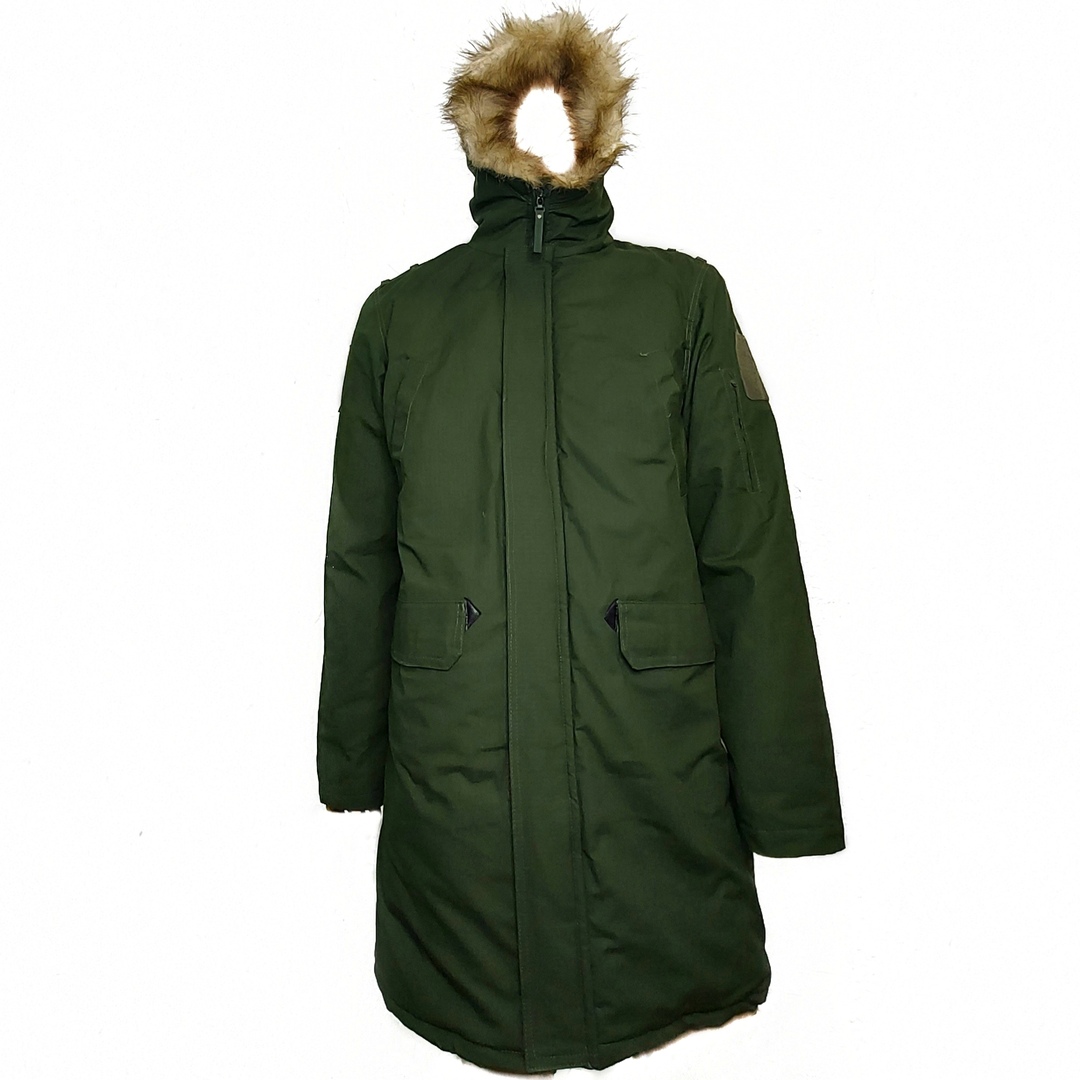 -Центральная застежка на двух замковой молнии, закрыта ветрозащитной планкой с потайными липучками;
