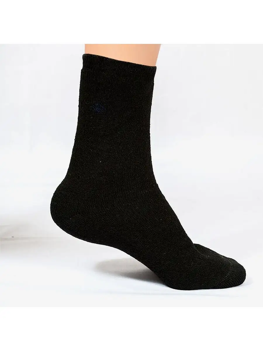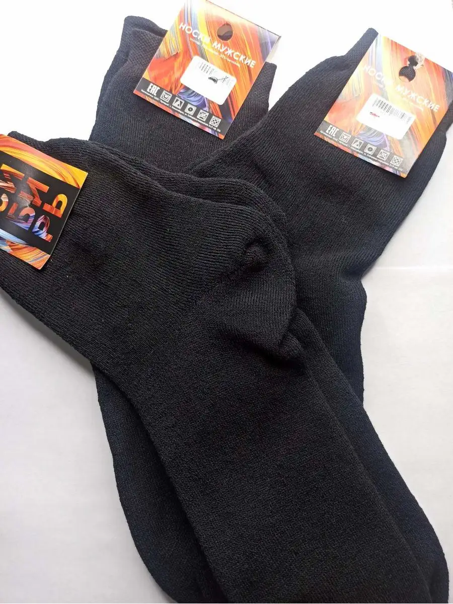 Носки мужские, махровые, классические, черные. Теплые, мягкие на ощупь, носки с высокой воздухопроницаемостью, хорошо впитывают влагу, и подходят для чувствительной кожи. Классические махровые носки имеют плоский шов на мыске, создающий дополнительный комфорт, который не раздражает и не натирает ногу. Качество и удобство данной модели обусловлены укрепленным мыском и пяткой повышенной износостойкости. Мягкая резинка обеспечивает максимально удобную посадку и распределяет давление, создавая повышенный комфорт (не сдавливает и не перетягивает ногу). Утепленные носки отлично держат форму, не деформируются, а так же обладают терморегулирующими свойствами. Не линяют после многочисленных стирок. Гладкая поверхность подарит приятные ощущения при использовании. Термоноски отлично согреют в холодную погоду. Высокие носки подходят как для повседневной носки, так и для спорта, активных занятий на свежем воздухе. Могут использоваться военными, солдатами, а так же охотниками, рыбаками, туристами. Перед ношением рекомендована предварительная ручная стирка при температуре до 40 градусов. Качественный смесовый состав порадует комфортностью и стойкостью в носке.