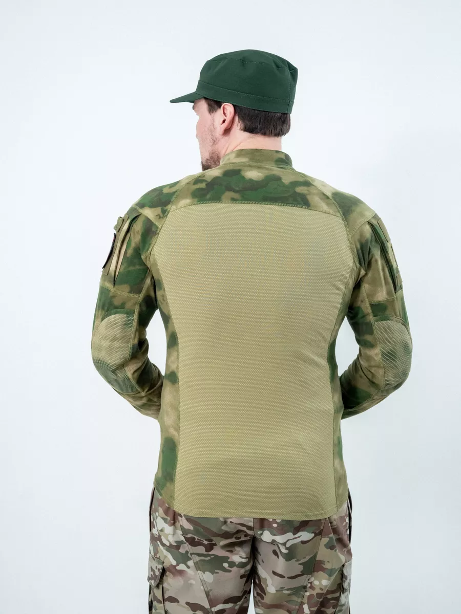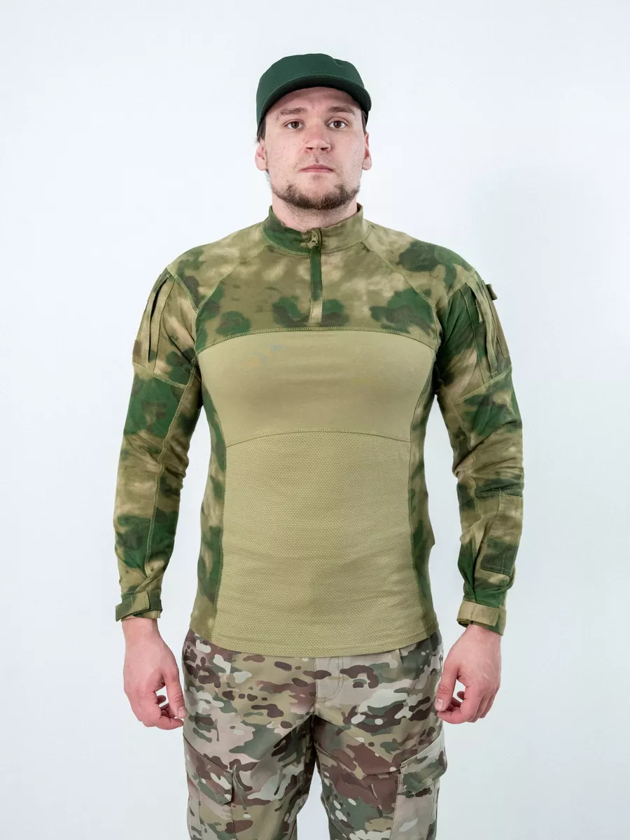 Боевая рубаха кмф в расцветке зеленый мох. Рассчитана для использования под бронежилетом или разгрузочной системы. Максимально плоские швы и отсутствие нагрудных карманов исключают дискомфорт и натирание. Имеет анатомический приталенный крой, застегивается на молнию, ворот можно носить как стойкой, так и в классическом виде. Ворот-стойка защищает не только от возможных ожогов и палящих лучей солнца, но и предотвращает возможное натирание шеи оружейным ремнем, бронежилетом или рюкзаком. Манжеты рукавов регулируются велкро липучкой. На правом рукаве расположен карман закрывающийся на невидимую молнию, на ней 3 ответных части велкро липучки (микропетли), на которые крепится шеврон, патч или нашивка. На левом рукаве в верхней части, расположен карман закрывающийся на невидимую молнию, с хлястиком на липучке снаружи. Также на карман можно крепить знаки отличия, патч флаг или шеврон. В нижней части рукава нашит небольшой органайзер карман, разделенный на две секции. Футболка с длинным рукавом выполнена из влагоотводящей ткани, нормализует микроклимат под одеждой бойца, защищает руки от солнечных лучей и от мелких механических травм. Локтевая часть рукавов усилена дополнительной тканевой прорезиненой накладкой, что позволяет избежать разрывов и повреждения изделий. Военно-полевая рубашка идеальна для повседневной носки в качестве военной формы, для охоты и рыбалки, для участия в военно-тактических и военно-спортивных играх. А также для активного отдыха на природе, для пеших прогулок и походов различной степени сложности, в том числе горных походов.