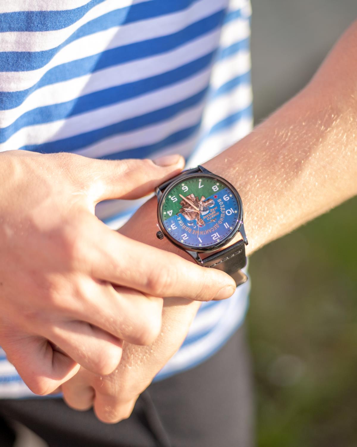 Циферблат с полноцветным нанесением, люминисцентная аппликация часовых индексов и стрелок. Завинчивающаяся задняя крышка из нержавеющей стали 316L с гравировкой. Страна Япония производитель Seiko TMI. Диаметр 4 см. Корпус металлический, кварцевые. Водозащита 3 ATM. Аналоговые стрелки, формат 12 часов. Материал браслета экокожа, ширина 20 мм, классическая застежка пряжка. Цвет циферблата, тематический принт. Тип механизма - кварцевый механизм Калибр PC21J. Антимагнетизм 1600 А/М. Диапазон рабочих температур: от -5 до +50 С. Элемент питания SR626SW. Срок службы элемента 3 года. Стекло минеральное.