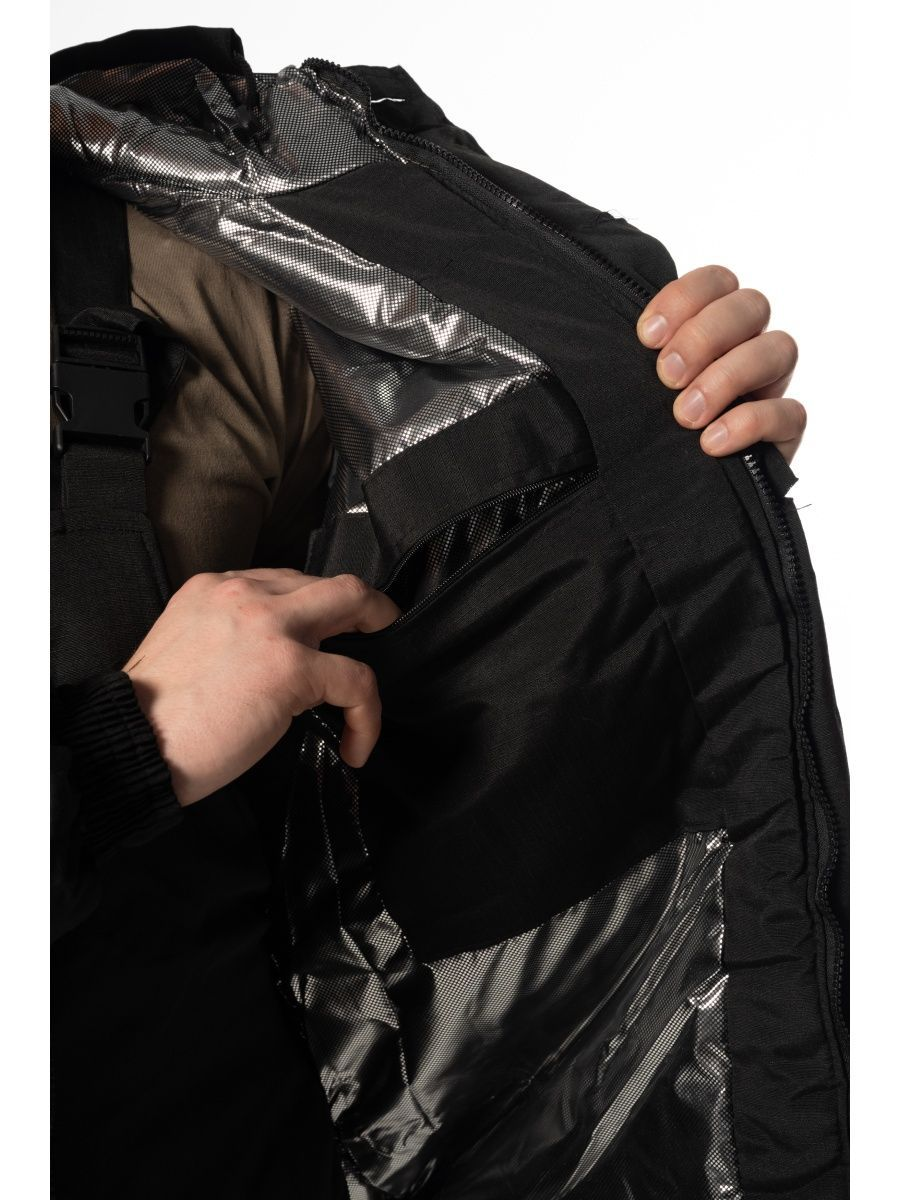 Костюм Горка-6 в черном цвете. Отлично подойдет как для повседневной носки, прогулки с собакой, так и для профессиональной деятельности, охранных структур, для силовых структур, Росгвардии, военным, рабочим (рабочая утепленная одежда). Так же костюм утепленный идеально подойдет для тех, кто занимается охотой, рыбалкой (зимней ловлей), туризмом и другими активными видами отдыха. Удобный, теплый тактический костюм из ткани повышенной прочности, с защитой от влаги, холодного ветра и перепадов температур. Не выгорает, не шуршит и не садится. Костюм состоит из куртки и комбинезона. Куртка прямого кроя, застегивается на молнию с ветро-влагозащитным клапаном, с пуговицами на канадской ленте. Подклад из фольгированной ткани, позволяет сохранять тепло внутри, отражая его от тела. Куртка имеет 6 карманов (2 накладных с клапаном, 2 прорезных нагрудных на молнии, 1 нарукавный, 1 внутренний на молнии). Капюшон регулируется утяжкой, рукав втачной с манжетом на резинке, утягивающая резинка в районе талии. Комбинезон с центральной бортовой застежкой на тесьму-молнию, с 2 накладными объемными карманами. По линии талии стянут эластичной тесьмой. Имеются бретели с карабинами для подгонки по росту.
